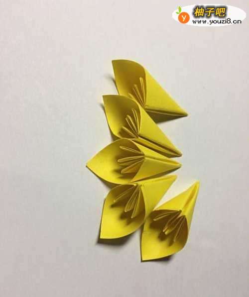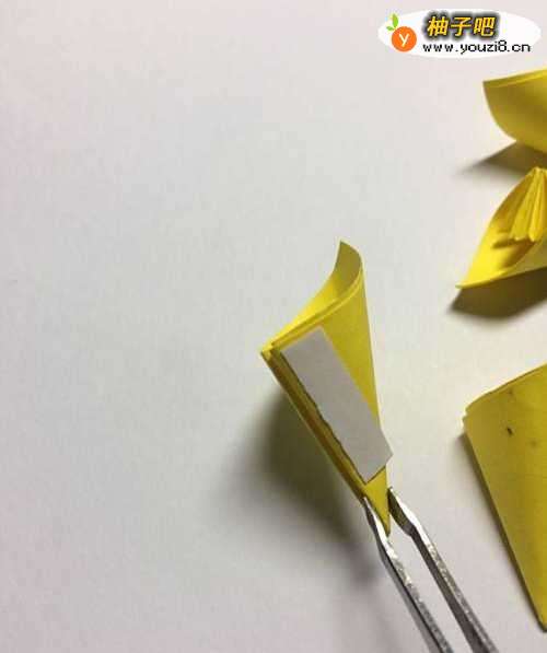 16粘贴最后一个花瓣时,粘贴好的花瓣的左右两边都贴上双面胶。