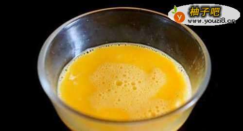 2先拿出一个鸡蛋,再拿出一个容器,把鸡蛋打在一个容器里面,搅拌均匀,加上一些糖和盐。