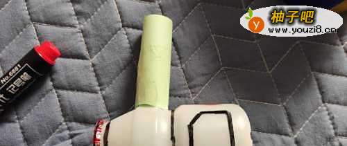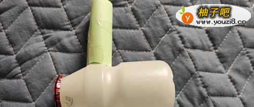 4将烟囱和饮料瓶粘在一起做成小火车头。