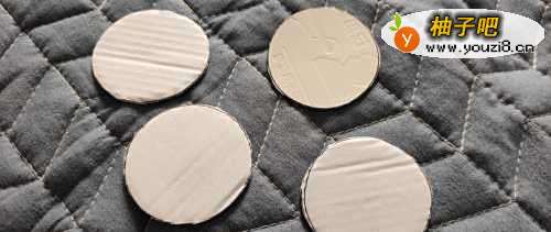 用剪刀将废旧纸盒剪出若干圆形纸片。