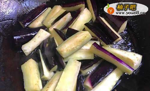 3用剩下的油继续炸茄子和腐竹,炸好之后分别捞出备用。