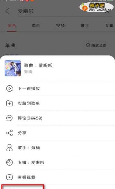 2、搜索框内输入歌名,在搜索结果中找到单曲,点击右侧的三个点
