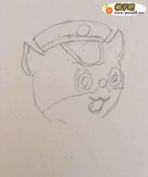 第一步 再画上黑猫警长的警官大沿帽 包括帽沿 帽徽 红色帽框