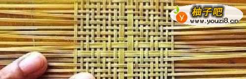 步排列经篾(横竖排列)我使用的是染色过的竹篾。宽度和根数都不是固定的,根数越多做出来的方框就越大。编织采用的方式是交错式的,形成如图所示的层叠编织。