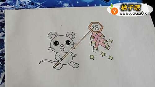 儿童绘画之如何画鼠年送福