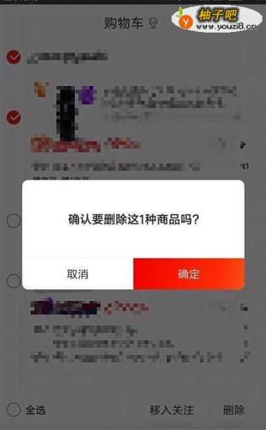 7这时同样会弹出一下确认删除商品的提示,点击确定按钮后,该商品就会被移入关注的列表中。