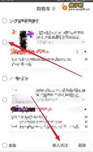 6我们也可以在选中要删除的商品后,点击下面的“移入关注”按钮。
