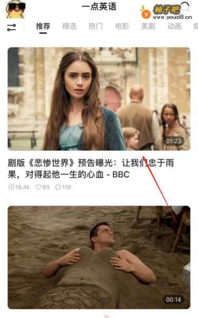 打开一点英语后,在首页根据等级、分类等,选择你感兴趣的视频,先将视频观看一遍。在视频下方也有互动区,可以和其他学习英语的小伙伴互动哟!