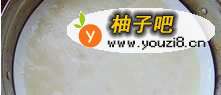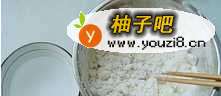 糯米粉倒入容器,加入适量温水;揉成光滑滋腻的面团。