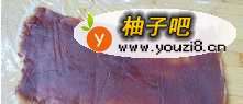 5待面蒸好取出,包入抹少许油的保鲜膜上擀成片。切去边角,将红豆沙均匀抹在上面;