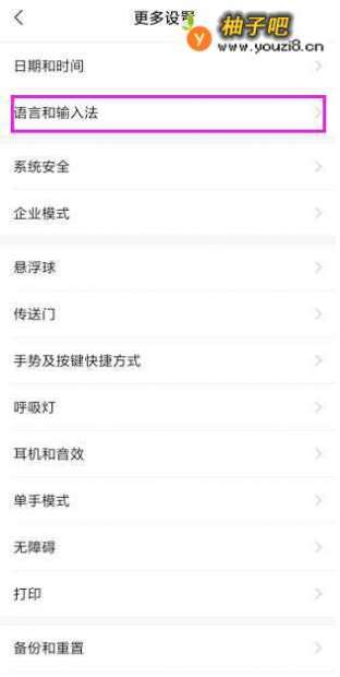 5来到更多设置的界面,点击语言和输入法,如图所示