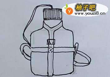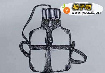 7用中性笔画行军水壶的细节,然后擦去铅笔痕迹。一个行军水壶画好了,您也来学习画一画吧。