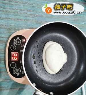 8到另一个碗里,就是面和糖的糊糊里,糊糊要足够稀,不然就会煎出来一个四不像