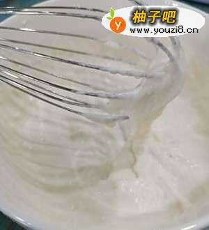 2把70克面粉和80克酸奶和20克糖放进第一个碗里搅拌。糖必须放。
