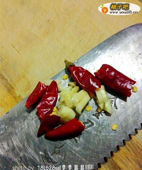 5油锅烧热后,转小火,将干辣椒、蒜瓣放进锅里煸香;
