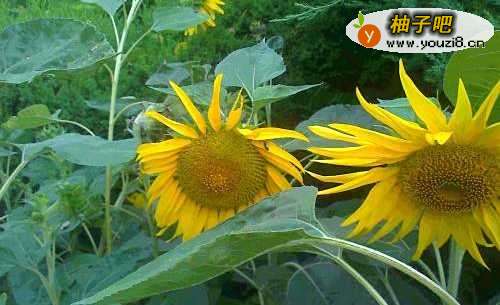 这是生长的小向日葵花,向日葵花的枝干很不固定,在风大的时候就容易的被吹倒,这就是要在一小块地上多种向日葵花的特点,