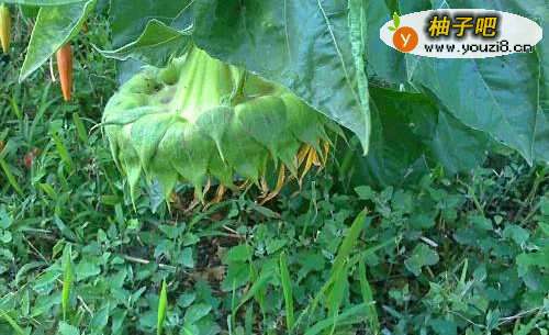 3你看这大大绿色的葵花叶子一是保护金黄色的葵花,也是保护葵花籽的花絮不要掉,
