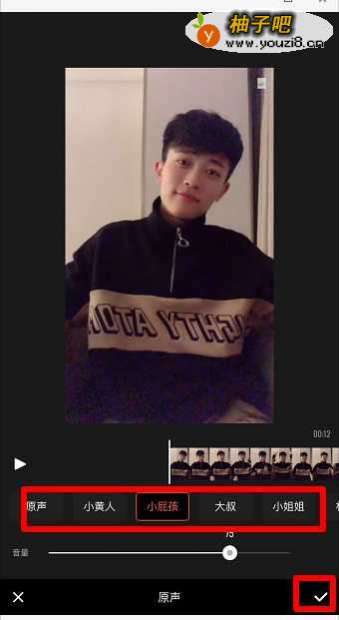 4有“小黄人”“小屁孩”等声音可供选择,左滑还有更多,选择后点击“对勾”。