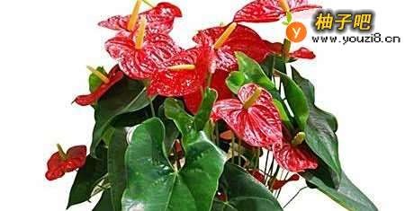 红掌天南星科宿根草本植物,著名的切花花卉,属热带植物品种。摆放在居室内也可去除甲醛,而且其观赏性很强,既可切花栽培,又可盆花观赏,常用于家庭居室,客厅及会议室的美化布置。