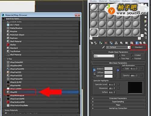 2然后我们给茶壶一个材质球,再如图转换成VR材质球