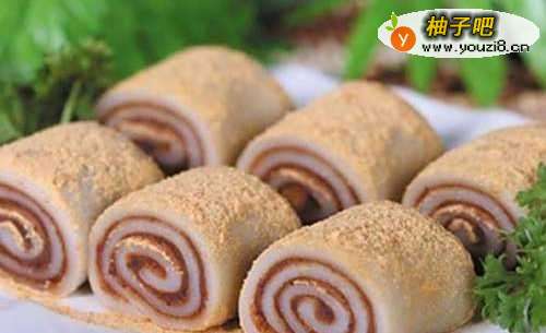驴打滚的大名叫“豆面糕”,是北京的有名小吃。驴打滚具有口感香、甜、黏、浓郁的黄豆粉香味。