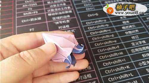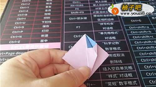 4我们把上面的边从中间撑开,并把右侧的边向后折,如图。