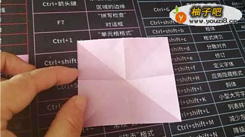 3把右侧的边向左折,再把上侧的边也向右折,如图所示。