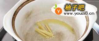3在锅中放入少量食用油,放入生姜,待爆香后倒入火腿丝和虾皮