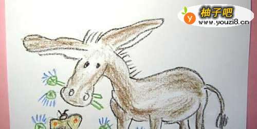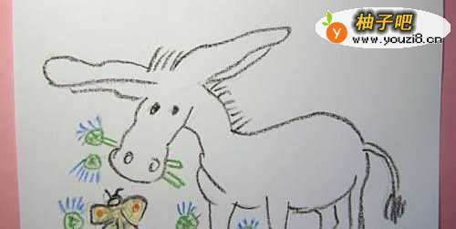用蜡笔的形式来绘画深受孩子们喜欢,在白纸上用黑色蜡笔绘制图形的轮廓线,接着用不同颜色的蜡笔来涂色,这样画的图形颜色丰富,色彩亮丽有特点,看起来画面有感染力和很强的画面感,给人印象深刻。这里给大家分享一个用蜡笔画快乐的小毛驴,喜爱绘画的朋友们,跟着步骤一起来画画吧。