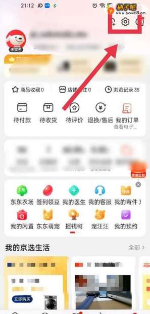 2这时,在我的模块页面能够看到账号信息及订单等信息,选择该页面右上角的设置图标;