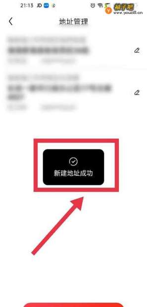 7最后,我们会在返回的地址管理页面中看到新建地址成功提示字样。