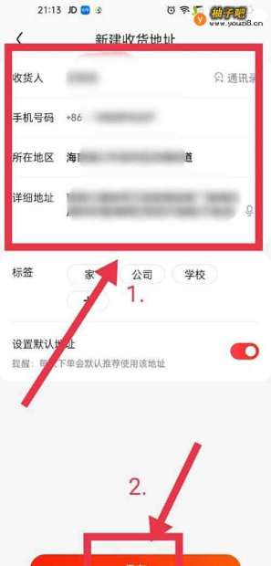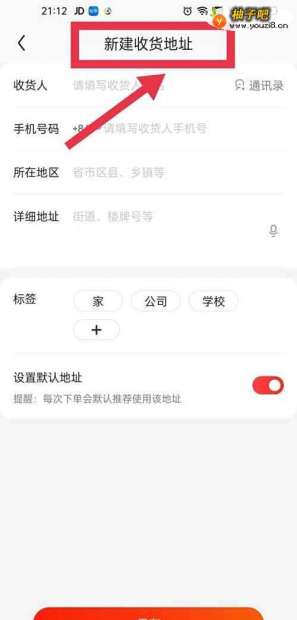 5马上可以看到新建收货地址设置页面;
