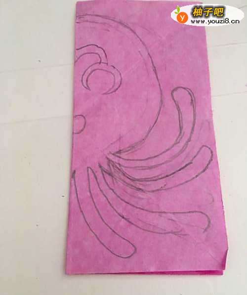 6第六步 剪完外围之后 再剪去章鱼其它涂实的地方 和章鱼的眼睛 嘴巴 头部的纹缕等等 剪完之后 取开铺平 一条可爱的小章鱼就完成了