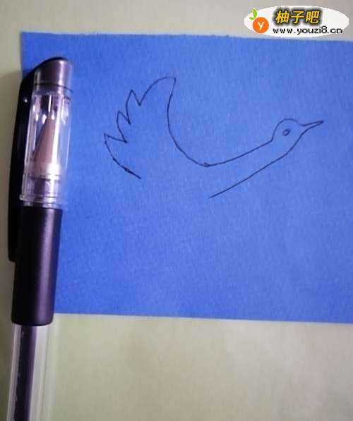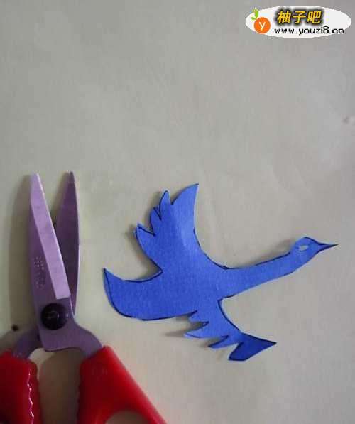 6第六步,接着用剪刀按照画好的漂亮的天鹅的轮廓剪裁出来,剪裁要细致一些。