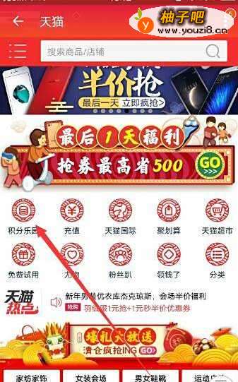 3点击第一个积分乐园,此处的积分即指的是天猫积分。