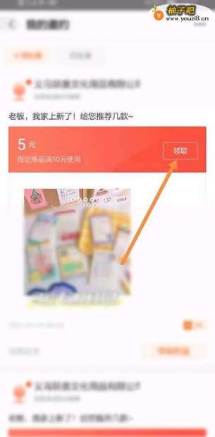 3找到你关注的店铺,点击图中的“领取”,如上所示。