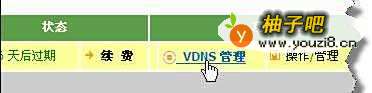 3进入域名管理页面后选择您于我司申请老板邮局业务的域名记录,点击后面“功能管理”项目下的“VDNS管理”链接,如下图所示