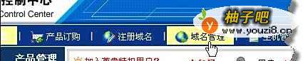 2进入“控制中心”后点击上面导航栏中的“域名管理”链接,如下图所示