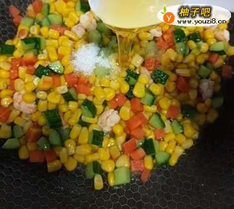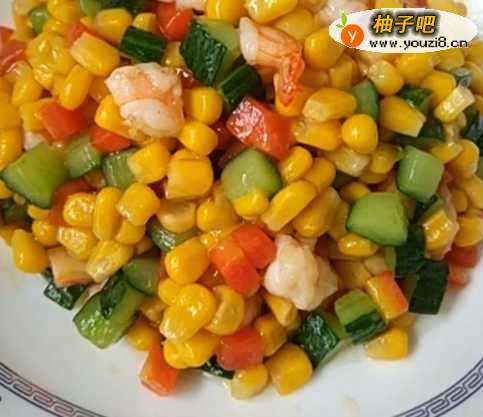 准备好煮熟的玉米粒,捞出过凉水,并控干水分;