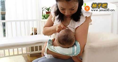 胸贴胸,腹贴腹。就是和喂母乳的姿势差不多,只不过让孩子的身体和面孔朝上而已,不要太竖。