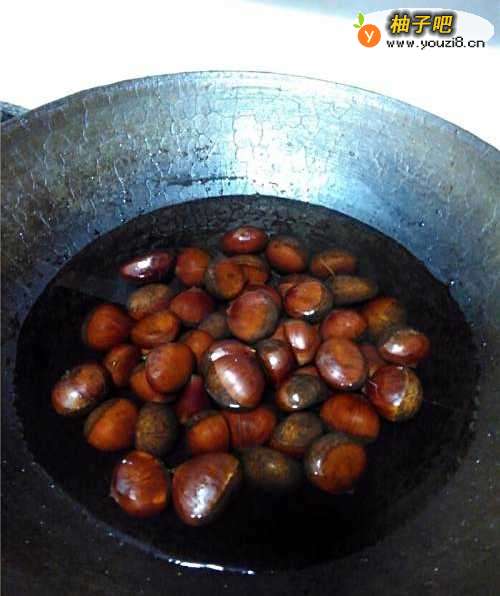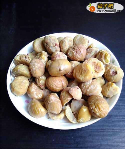 4煮好的板栗,捞出剥壳。剥一点,捞一点,冷却后的板栗不好去壳。