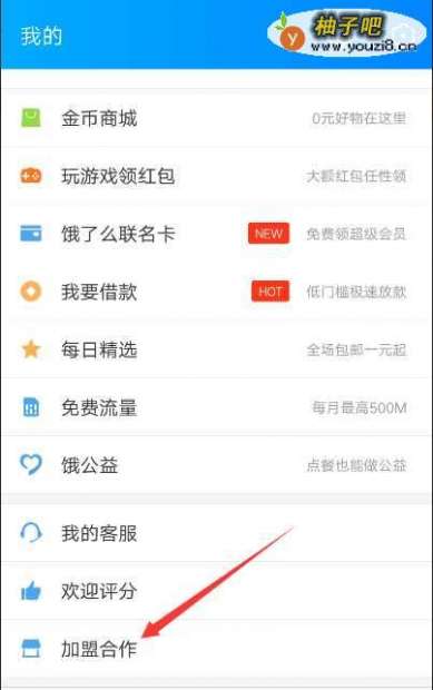 2在我的界面中往下拉到最底部会看到加盟合作,如图所示!