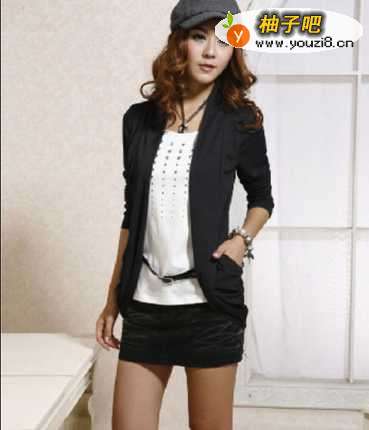 2虽然同样是黑色的外套,但是这款搭配与前款不同之处在于层层蛋糕裙式雪纺衫的效果,可以将腹部多余的肉肉隐藏起来哦,搭配黑色的紧身裤穿效果是非常棒的。