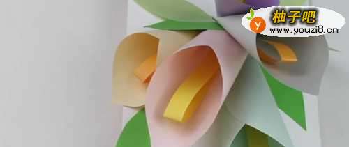 6长条彩纸对折后粘贴再花瓣的中间。