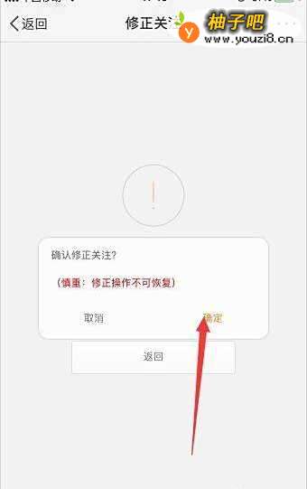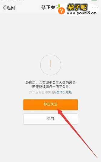 4点击打开修正关注页面,微博反垃圾点击页面中间的 修正关注,如下图