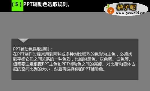 在PPT制作时经常用到两种或多种对比强烈的色彩为主色,必须找到平衡它们之间关系的一种色彩,比如说黑色、灰色调、白色等。但需要注意根据PPT主色和PPT辅助色之间的亮度、对比度和具体占据的空间比列的大小,然后再选择你的PPT辅助色。