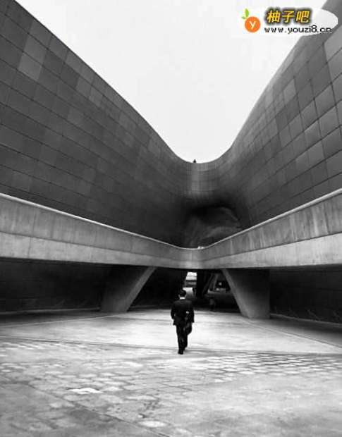 5如果把来DDP周边购物或者参观的人也纳入拍摄范围的话,照片的故事性则会得到进一步提升。这里需要提醒大家的是,在黑白色调的模式下如果拍摄对象身穿黑色衣服或者是西服的话,相对于建筑物,可以把人物拍的尺寸稍微小一点,这样效果会更好。(参考照片, D-3)