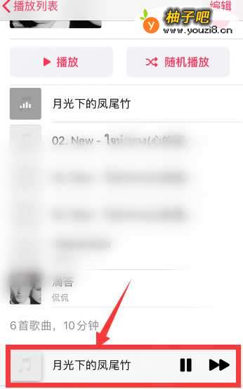 2、然后点击底部正在播放的音乐,点击待播清单最右侧的图标