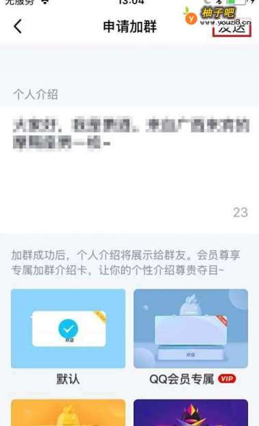 4在“申请加群”页面中,输入个人介绍,并点击“发送”。