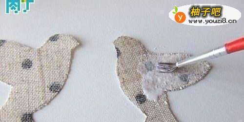 4第四步:在其中一个小鸟布料背面涂上胶水。